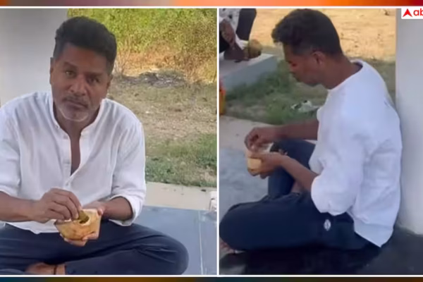Prabhu Deva is living a simple life in a village house, the actor was seen sitting on the floor eating coconut cream, a glimpse of ‘village life’ shown in the video