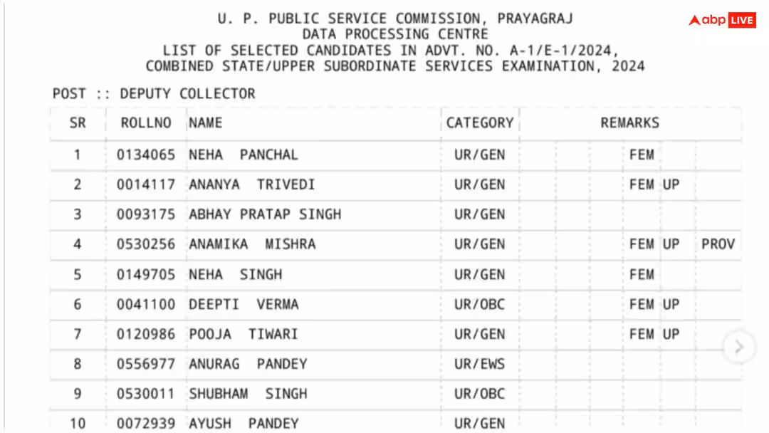 UP PCS Final Result 2024: UP Public Service Commission released the final result of PCS 2024, Neha Panchal became the topper.